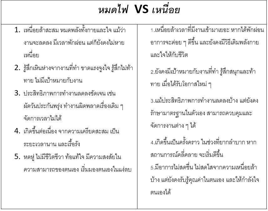 วันนี้มาสำรวจสัญญาณเตือนว่าเรากำลังหมดไฟหรือเหนื่อยกาย เพื่อตระหนักรู้ในตัวเอง และกลับมาดูแลใจได้ทันเวลากัน